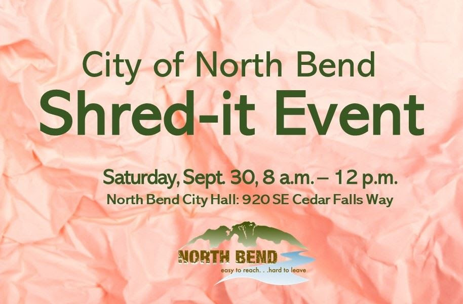 The City of North Bend has announced a free community Shred-It event on Saturday, September 30. From 8 a.m. to 12 p.m., residents can bring their unwanted papers to the North Bend City Hall for a safe and efficient shredding process. The event is open to all North Bend residents.