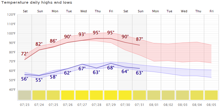 Please remember these temps can change either way cause we are still a few days out from the high temps. The initial models had us at triple digits for next Wednesday and Thursday, which is still possible.