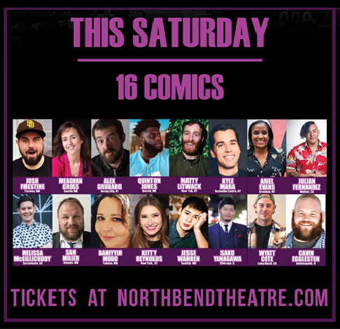 Hosted by the North Bend Theatre, Saturday’s competition will be the first round of the contest. Beth Burrows, the owner of the North Bend Theatre, is thrilled to host the event. “The first round of the competition is always a blast. The comedians are fresh and fully charged. You can expect a lot of energy. They will come out swinging!”