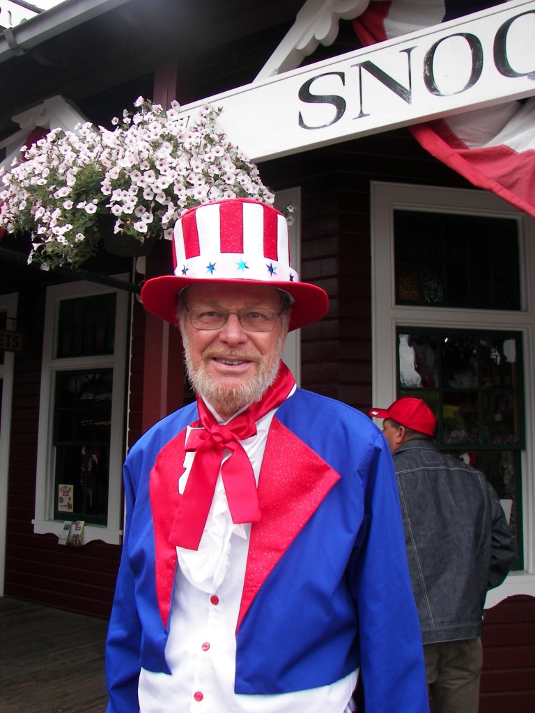 Enjoy a scenic train excursion through the Cascade foothills, including a ride past the top of Snoqualmie Falls. The train will operate on both Saturday and Sunday this weekend, but Uncle Sam will be aboard on Sunday, July 1st, only, ready to punch your train ticket.  Celebrate with them!