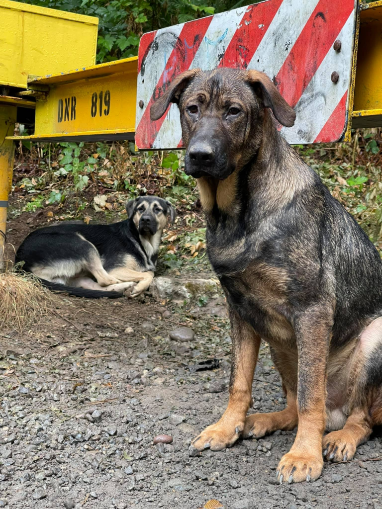 On Friday, August 20th, a Department of Natural Resources (DNR) employee, Shannon Eggers, went to open the DNR gate on Winery Road as part of her job. That morning she discovered four mixed breed young dogs and a poured-out bag of dog food near the gate.