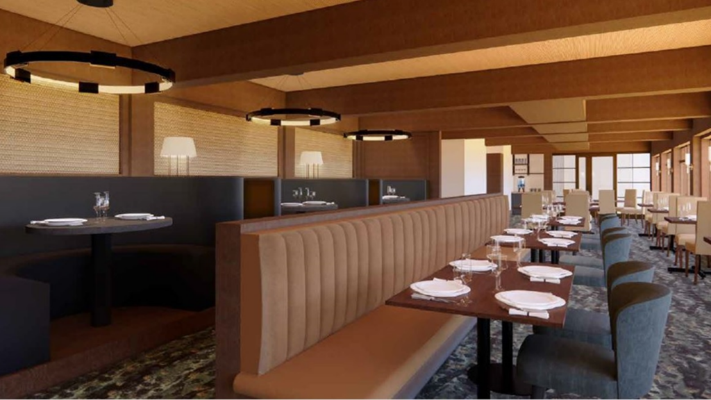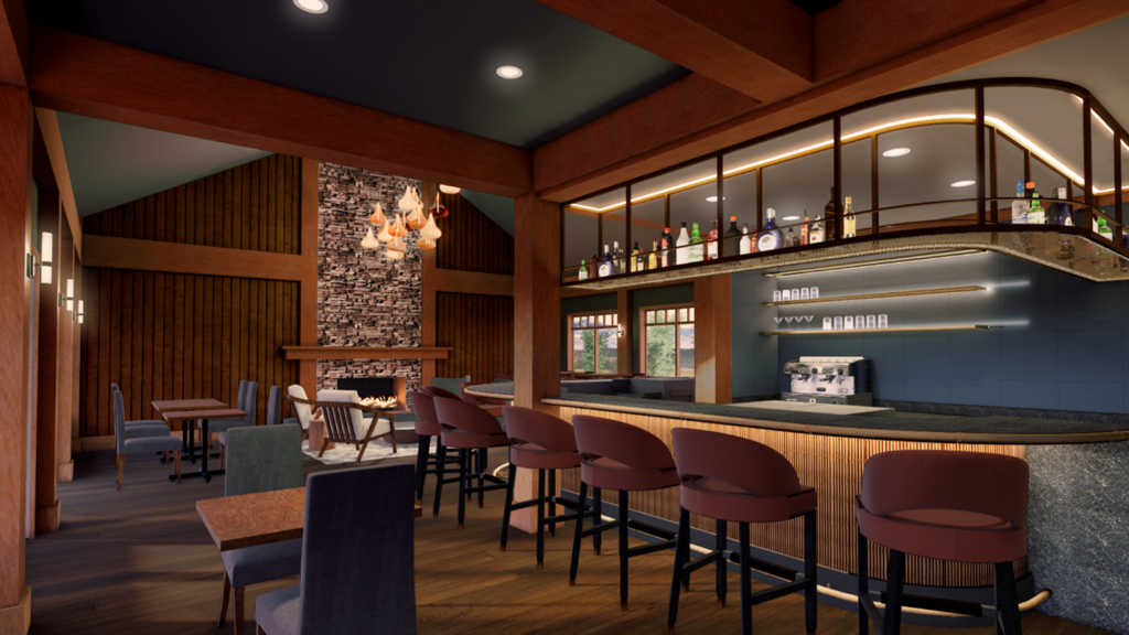 A new large meeting space is being constructed. It is designed to host events and gatherings with stunning natural views that provide a breathtaking backdrop. The main restaurant is undergoing a comprehensive redesign to offer an elevated dining experience while retaining the lodge’s traditional aesthetic.