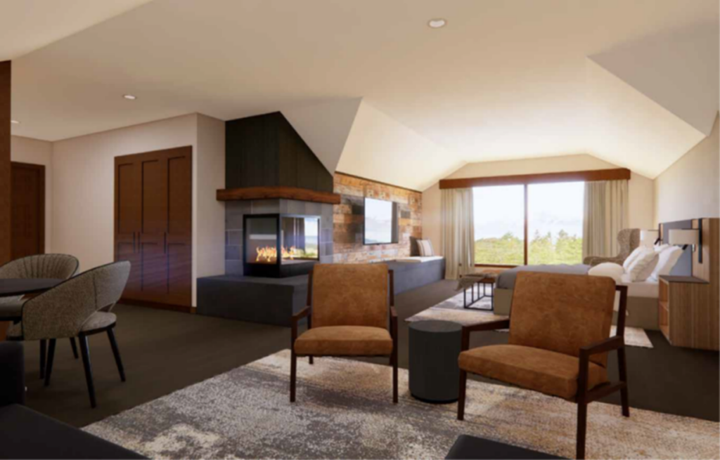These suites will offer breathtaking views, ensuring guests can wake up to memorable sights and sounds. Each suite will feature gas fireplaces and spa-like bathrooms, providing an indulgent retreat that blends comfort with the lodge’s rustic charm.