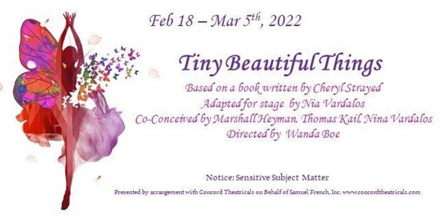Tiny Beautiful Things is relatable and understandable, filled with sorrow but at the same time uplifting. It is powerfully acted and beautifully directed by Wanda Boe with an assist from Melissa Carter, who also serves as stage manager for the production. The show runs from February 18th until March 5th.