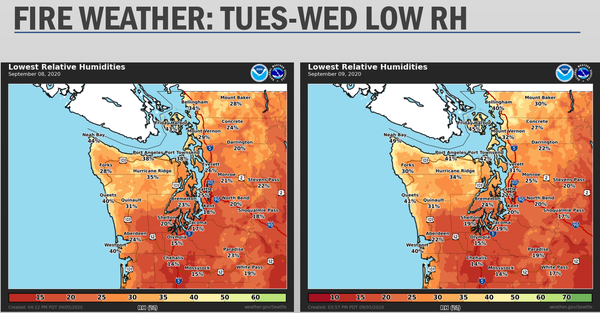 Given the plummeting humidity associated with downslope winds, fire danger will be much higher than usual for Western Washington.