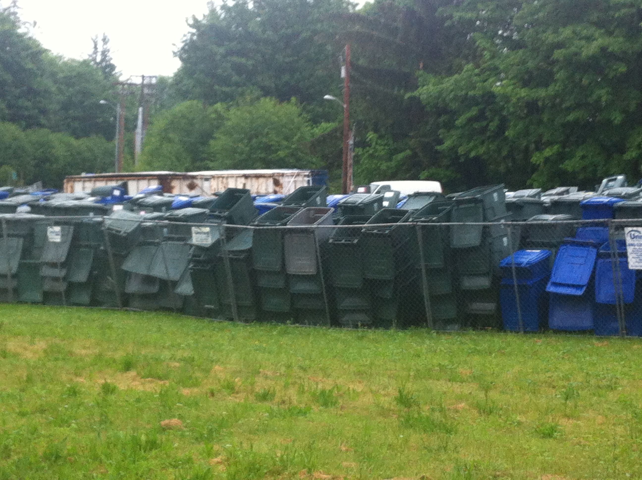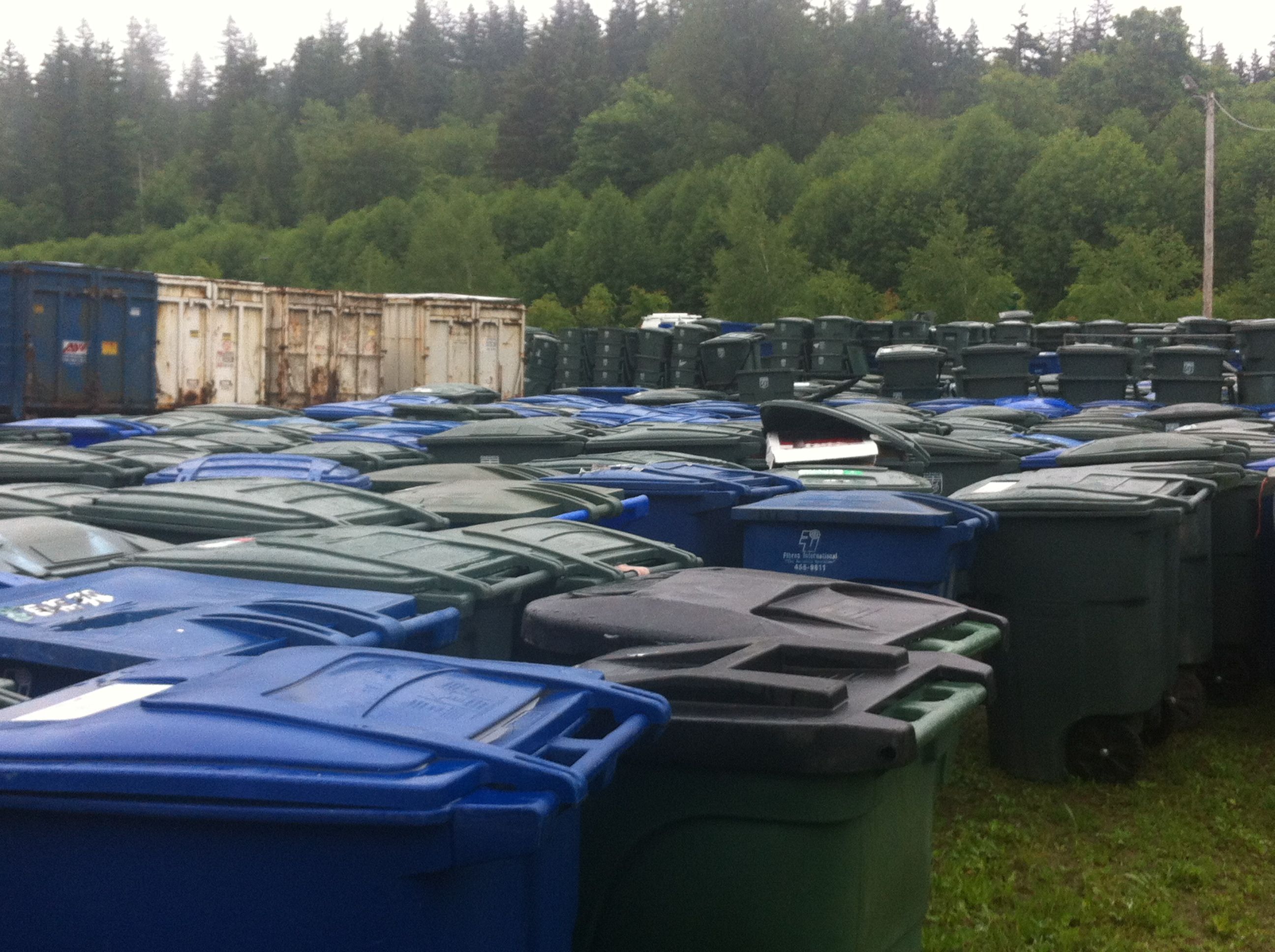 Have you driven by the corner of Railroad Ave (Highway 202) and Snoqualmie Parkway lately? If so, it’s hard not to notice the thousands of garbage, recycle and yard waste containers stored there; evidence of the completion of the big 2012 “Snoqualmie Garbage Can Switch Out.” 10,000 garbage containers in one location isn’t something you see (or smell) everyday. Now all that’s left is for Allied Waste to move those thousands of cans out of town.