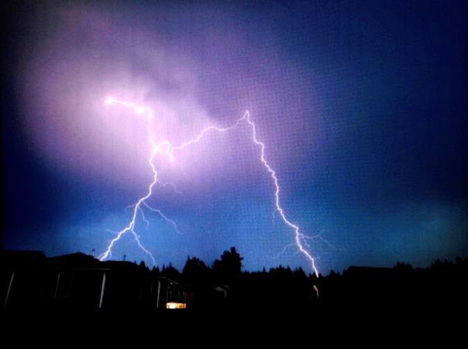 Lightning over Carmichael Park on Snoqualmie Ridge. Pic:  Gretchen Korf