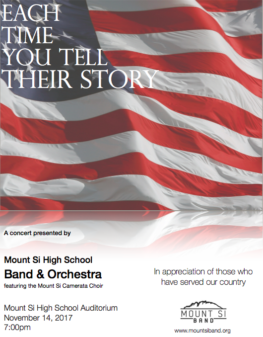 All students and the general public are invited to a free concert presented by the Mount Si High School Band & Orchestra entitled “Each Time You Tell Their Story.”