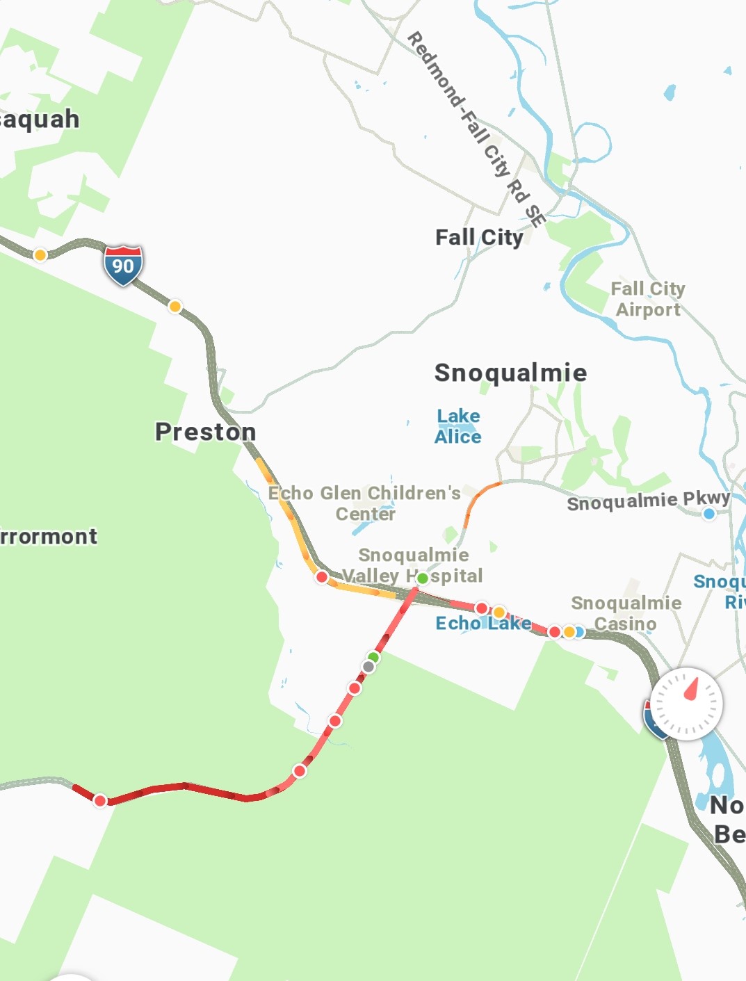 Traffic is backed up on to Westbound I90 and Snoqualmie Parkway. Use caution in the area
