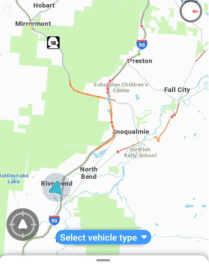 8. I’m just cranking about summer traffic, as usual. Waze re-routes drivers through Downtown North Bend, 06/19/2023.