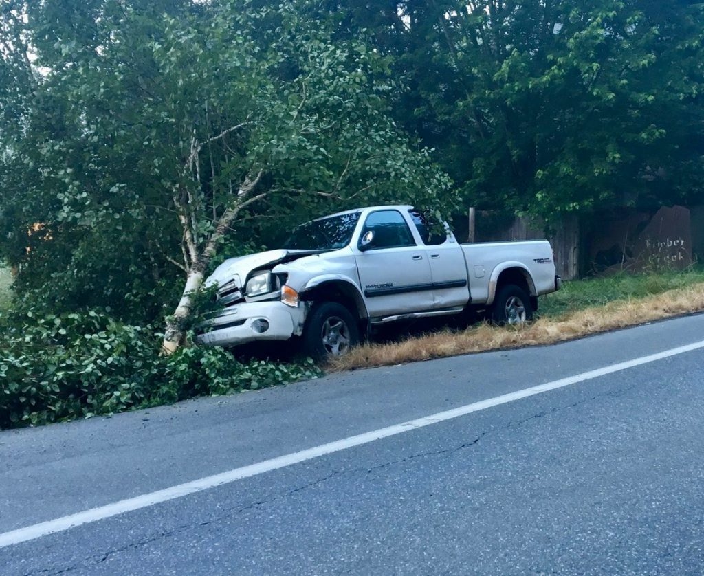 The truck also went off the road and struck a tree. The 24-year old male driver from Bothell suffered minor injuries and was taken to Harborview Medical Center. Both drivers were wearing seatbelts.