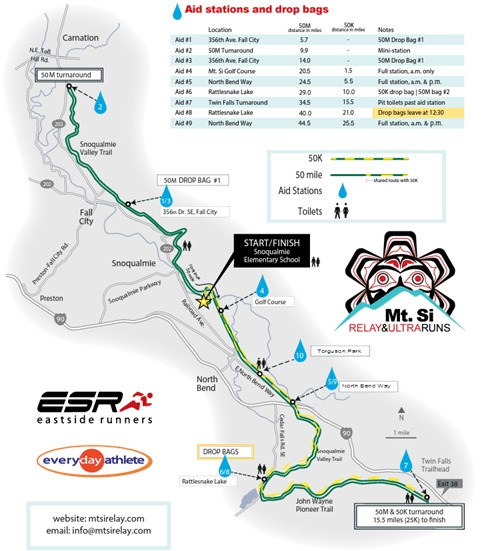 North Bend-Snoqualmie Police will be present to ensure safety at the North Bend Way and Snoqualmie Valley Trail crossing during the races. Volunteers will be placed also at Ballarat Avenue N, SE 120th Street, and Mt. Si Road with directional signage to assist runners in crossing safely.