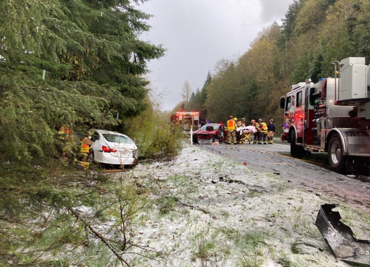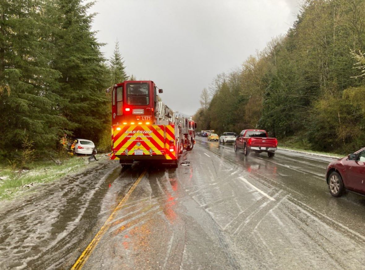 At approximately 5:30 PM on April 14th, the Washington State Patrol (WSP) reported two hailstorms caused Eastbound wrecks near mileposts 30 and 32 in North Bend.