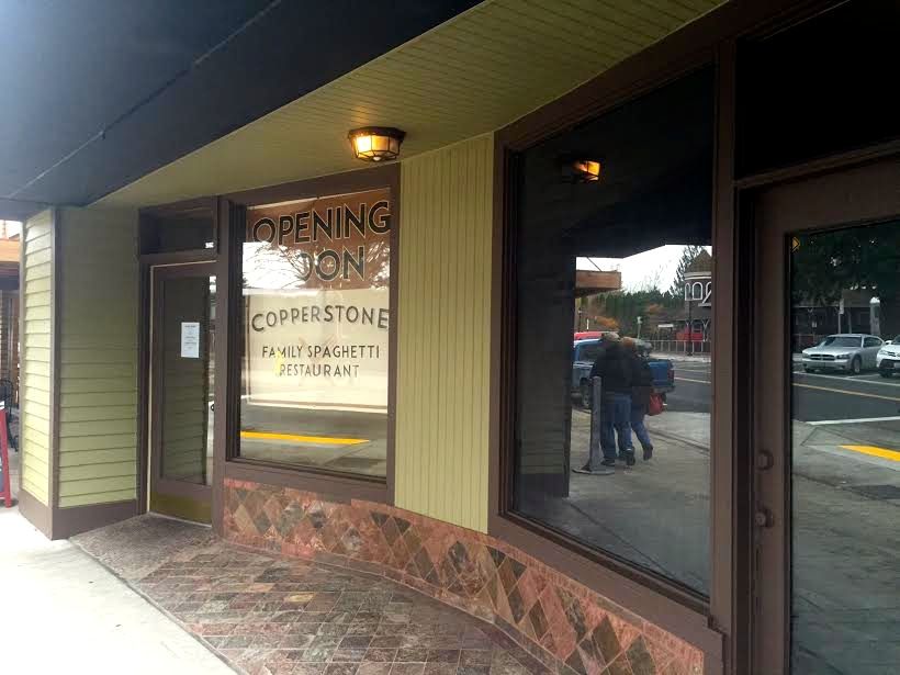 The place has been undergoing renovations, including an exterior paint job and refreshing. The new restaurant is called Copperstone Family Spaghetti Restaurant.