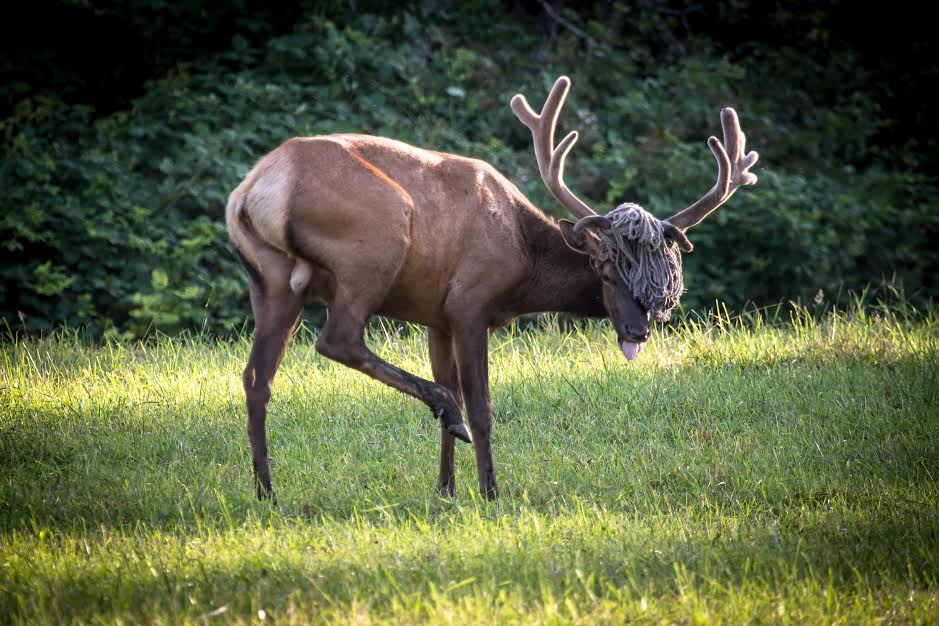 Jennifer says her best guess is that this poor guy has a old mop stuck on his head. Snoqualmie Valley resident, Jim Reitz, has also featured a photo of this unfortunate elk on his photography website recently, titling the elk “mop-top.”
