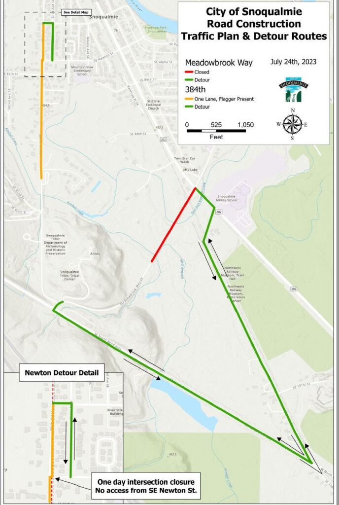 Upcoming Downtown Snoqualmie Infrastructure Projects: Meadowbrook Way Closure and 384th Lane Reduction