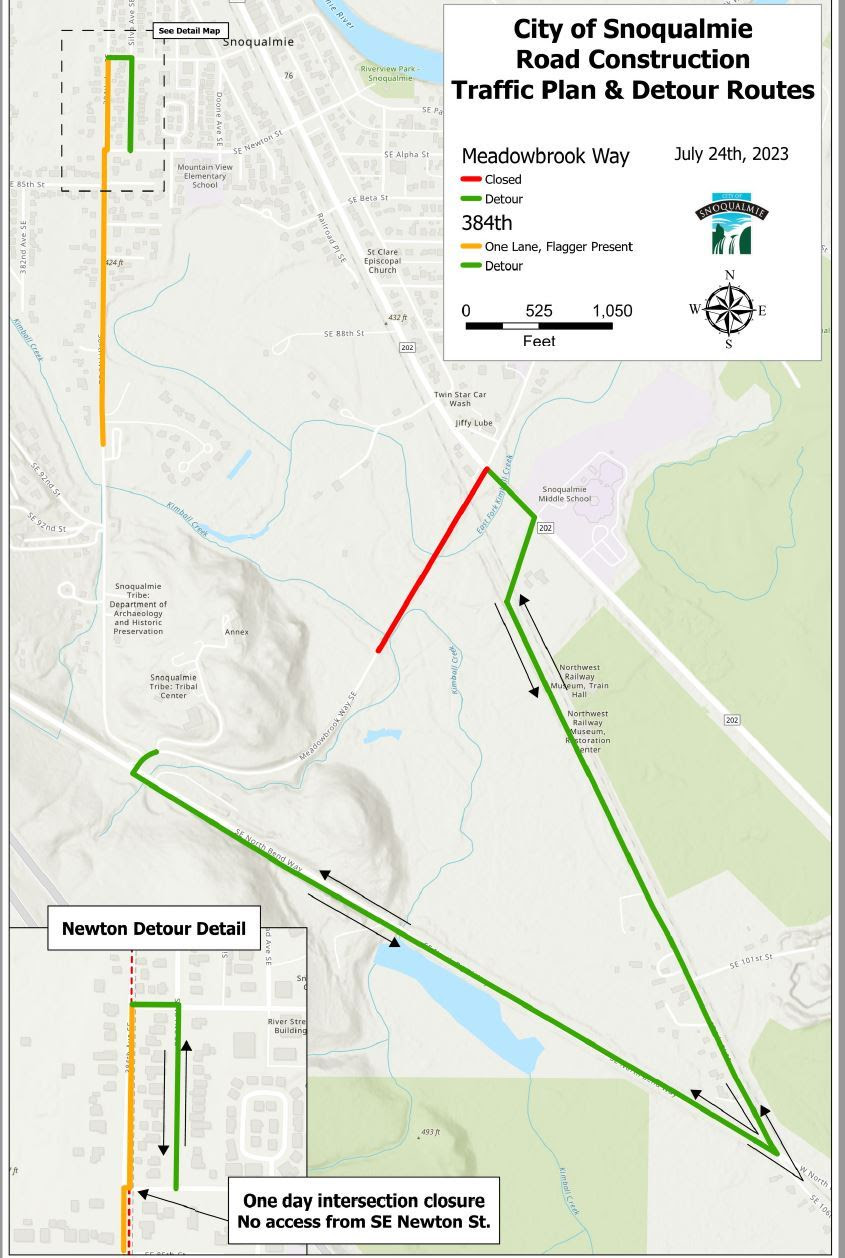 Upcoming Downtown Snoqualmie Infrastructure Projects: Meadowbrook Way Closure and 384th Lane Reduction