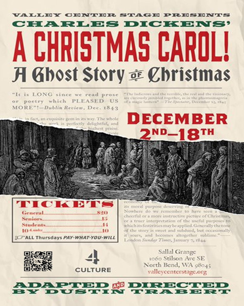 Dec 2-Dec 18, 2022-Thursday through Sunday at 7:30 pm (2 pm matinees) at the Sallal Grange Produced by Valley Center Stage