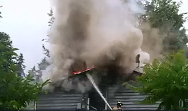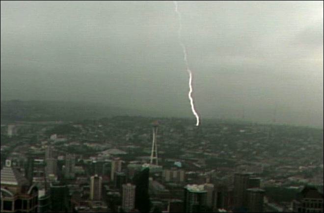 There’s been lots of thunder and lightning across other Puget Sound areas today. In Renton, a home was struck with lightning which started a fire and the impact sent the homeowner flying across his living room. He suffered minor injuries.