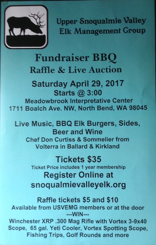 If you would like to support the Elk Management group or hear more about what they do, consider going to their fundraiser BBQ on April 29th. There will be live music, BBQ Elk burgers and beer & wine. You can register HERE for tickets.