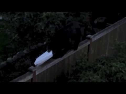 Barb McDaniel was awakened today, June 6, 2013, around 4:30AM by bears in the woods behind her back fence. And then much to her surprise, they tightrope walked the fence top (maybe these are the same bears spotted two weeks ago atop a fence a few blocks away on Carmichael Street) to access a neighbor’s garbage can and then walked the fence backward WITH a pizza box, dropped it, lowered itself down, got a slice and tightrope walked its way out with pizza in its mouth.