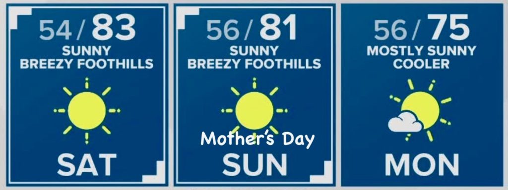 Temperatures are expected to be in the upper 70’s to low 80’s around the Valley. The east winds will help keep nighttime temperatures warm, too.