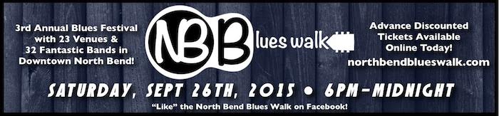 Wander the streets of downtown North Bend on Saturday, September 26th from 6PM to midnight. Socialize with friends and neighbors, hear some great live blues music, enjoy the food and drink at lots of local businesses. 32 acts at 23 venues and one ticket gets you in. For more information visit www.northbendblueswalk.com