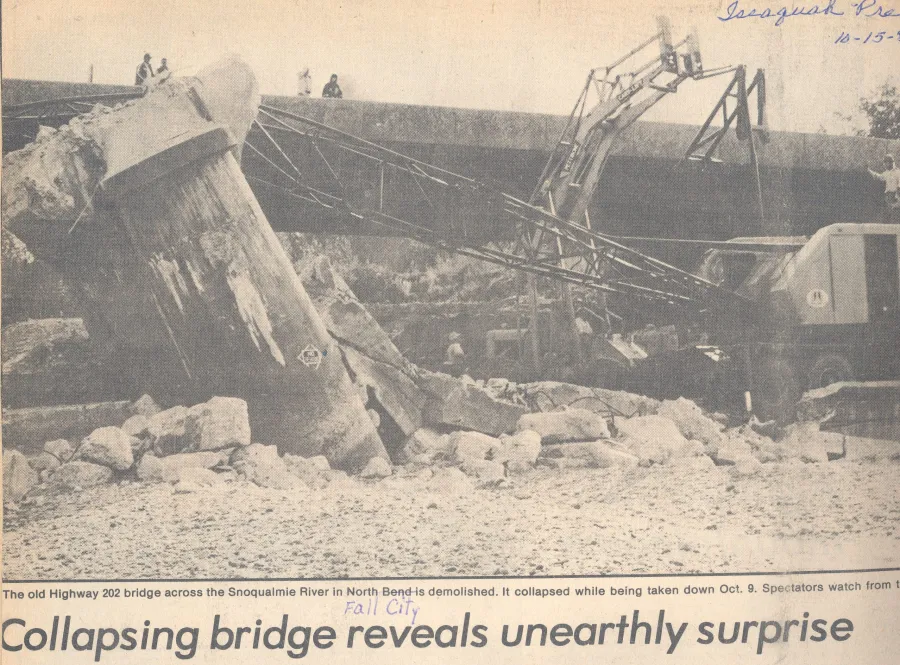 At that time, James was remembered as a kind and considerate man who was a good instructor, but no one knew what happened to him after he left Fall City. On October 8, 1980, two workers found the remains. The next day, October 9, the bridge collapsed, sending a crane operator to the hospital with a broken back. The bridge structure failed during the demolition because of the missing 1916 rebar.