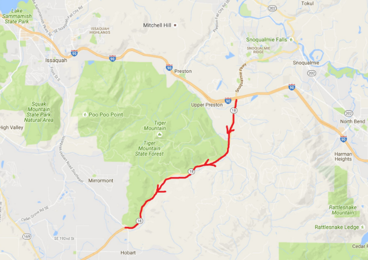 WSDOT announced that Saturday morning, August 20, 2016 between 4AM and 10AM, westbound SR 18 will be closed between Snoqualmie and Issaquah-Hobart Road.