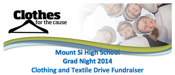 Organizers of the Mount Si High School Class of 2014 Grad Night have a way for you to get rid of all those old clothes (*and textiles) in your home that are worn out, don’t fit, stained, torn, etc. What you ask. Who would want those things?