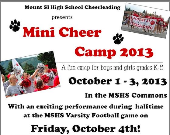 Visit the Mount Si Cheerleading website for more information and to register for the camp.