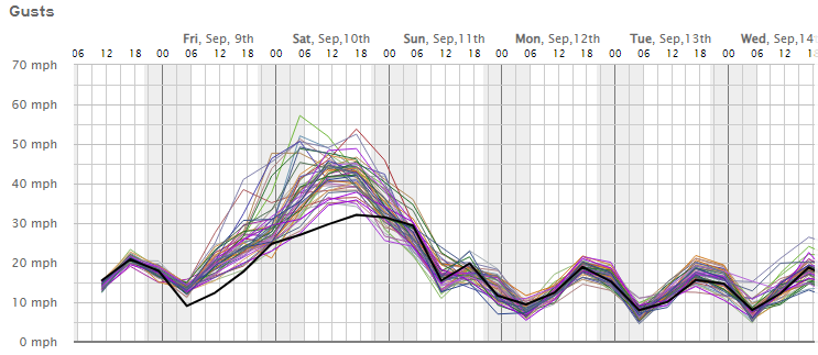 Above is a chart showing the wind gusts, and even though some do show higher gusts than 40mph, I’m not expecting that.