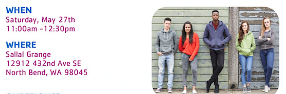 The YMCA  invites interested community members to attend the important meeting, Saturday, May 27th from 11AM – 12:30PM at the Sallal Grange, 12912 432nd Ave SE, North Bend, WA 98045.